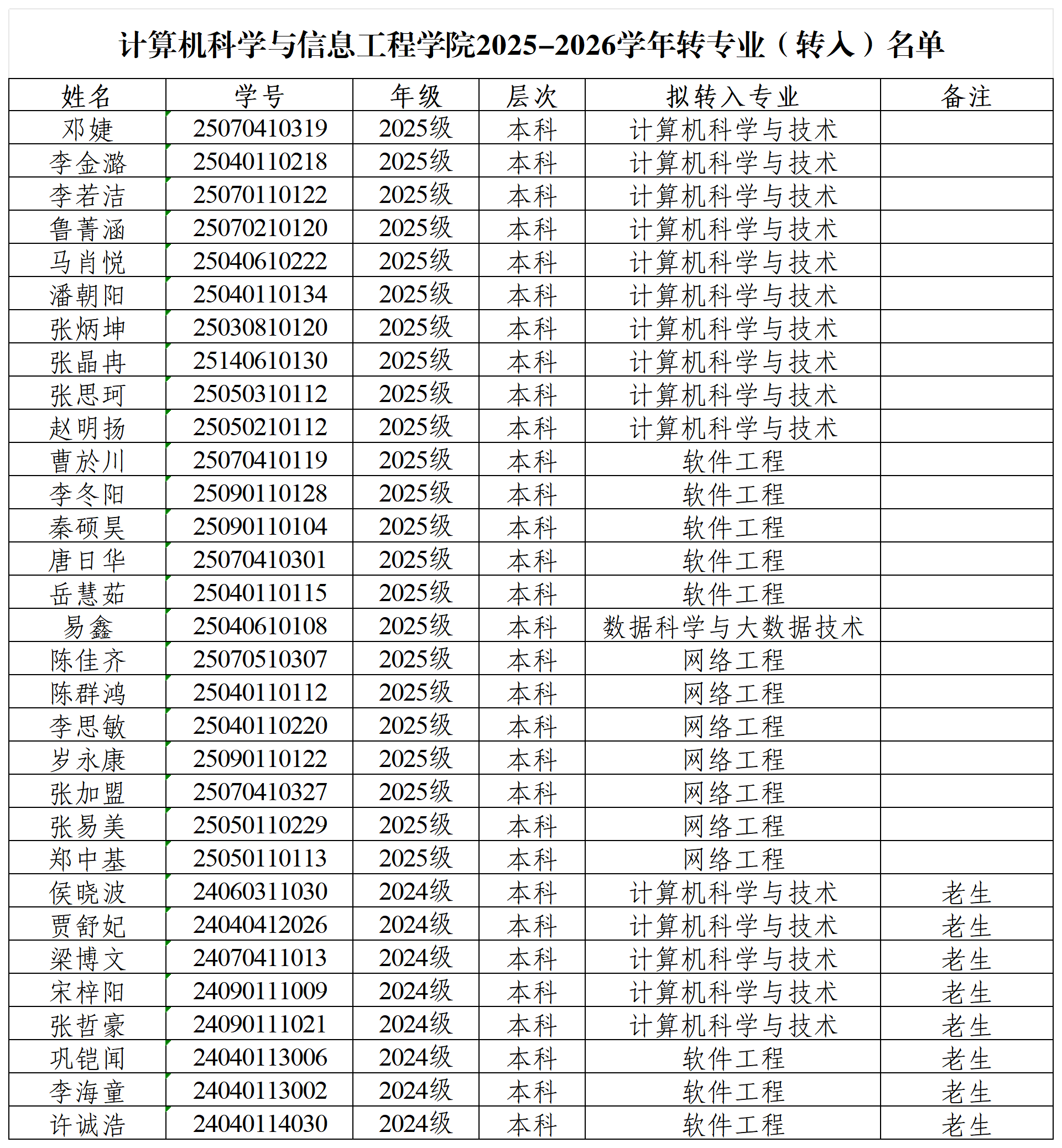 根据《qy太阳成集团tyc33455cc员工转专业管理办法》,经员工申请、资格审核及笔试面试等环节,现将2025-2026学年同意转入员工名单公示如下,公示期从2026年3月11日至2026年3月13日,共计3个工作日。公示期内有异议的,可通过电话等形式进行反映。
